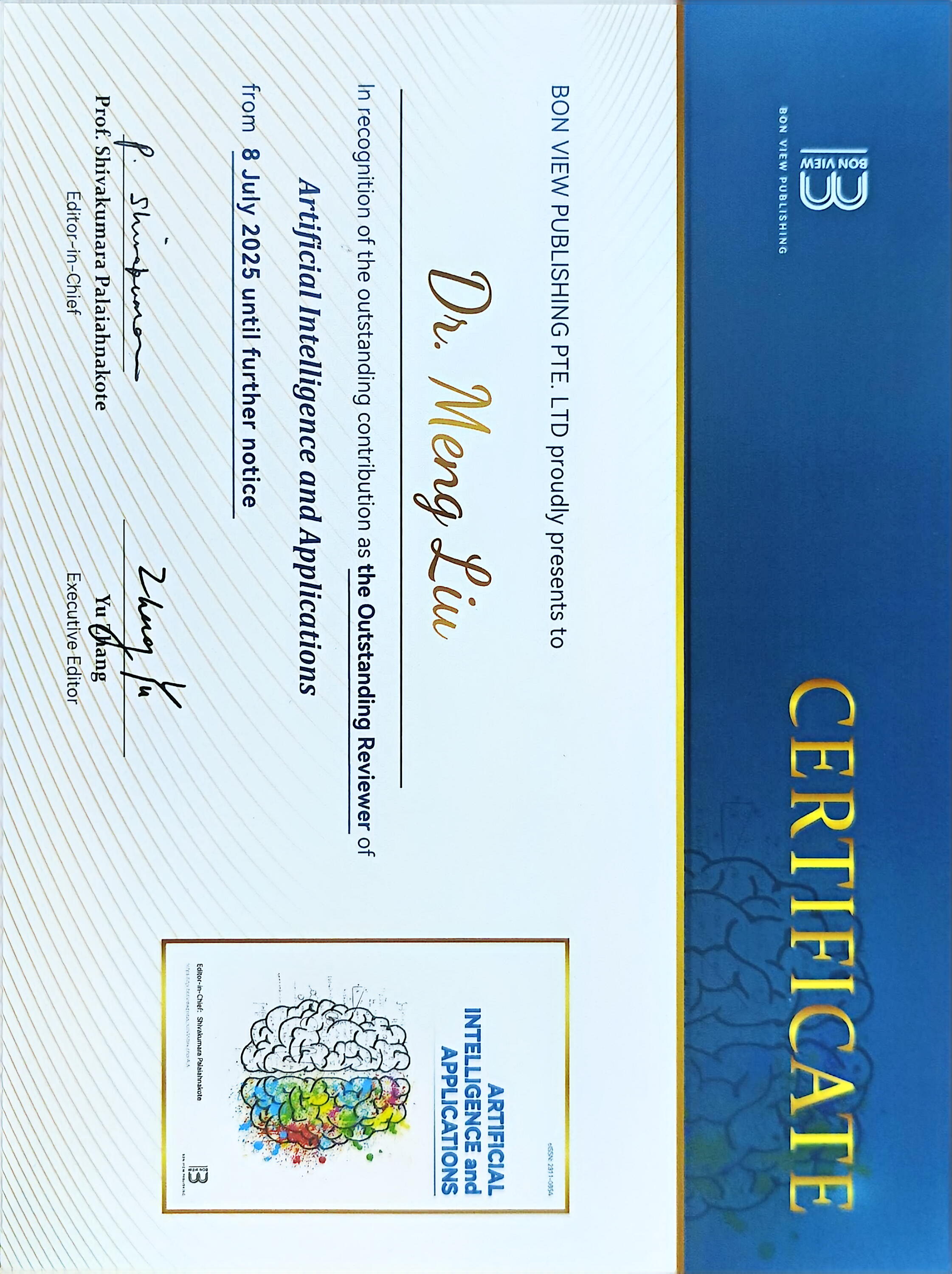 - 2025, Outstanding Reviewer, Artificial Intelligence and Applications. [Award]